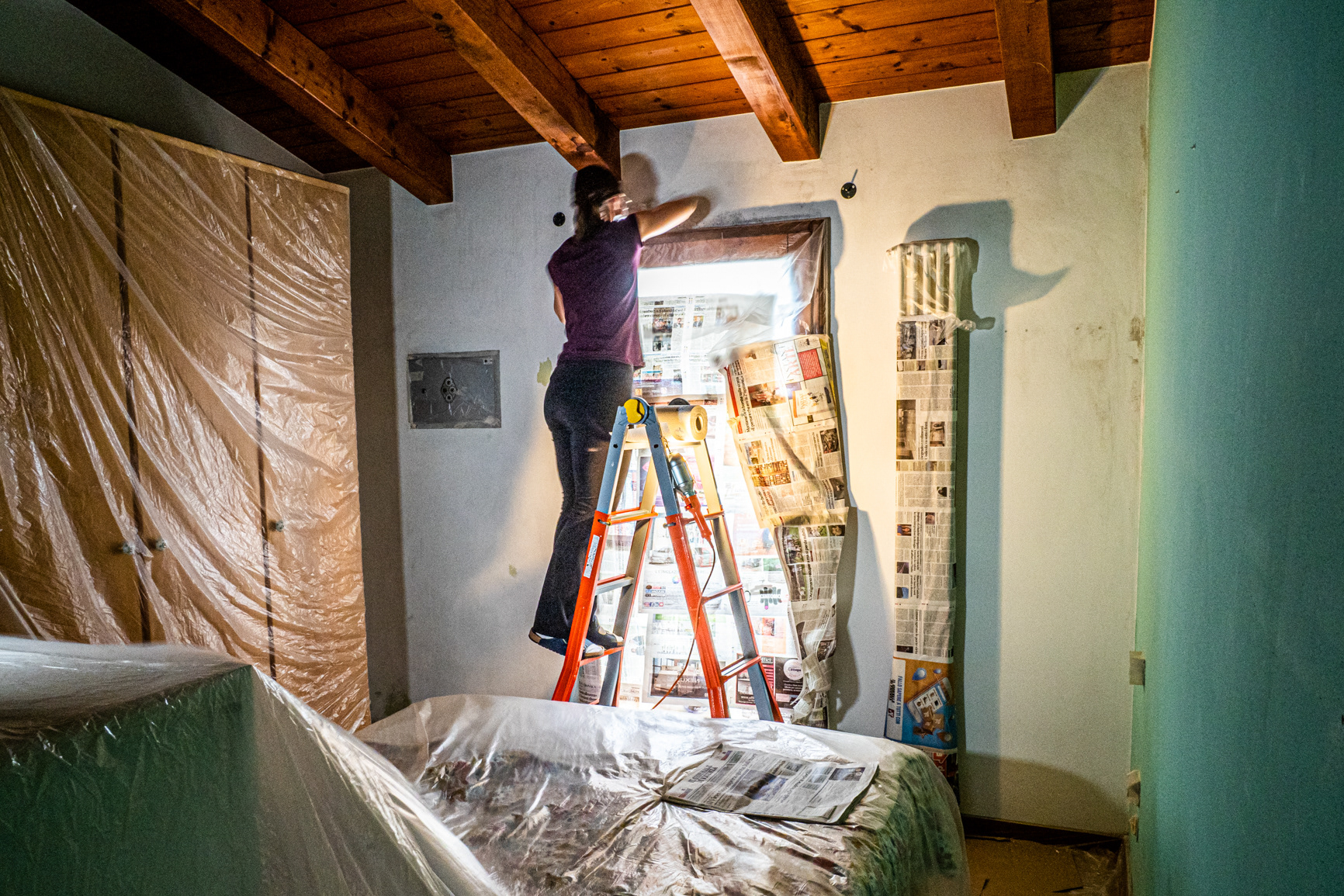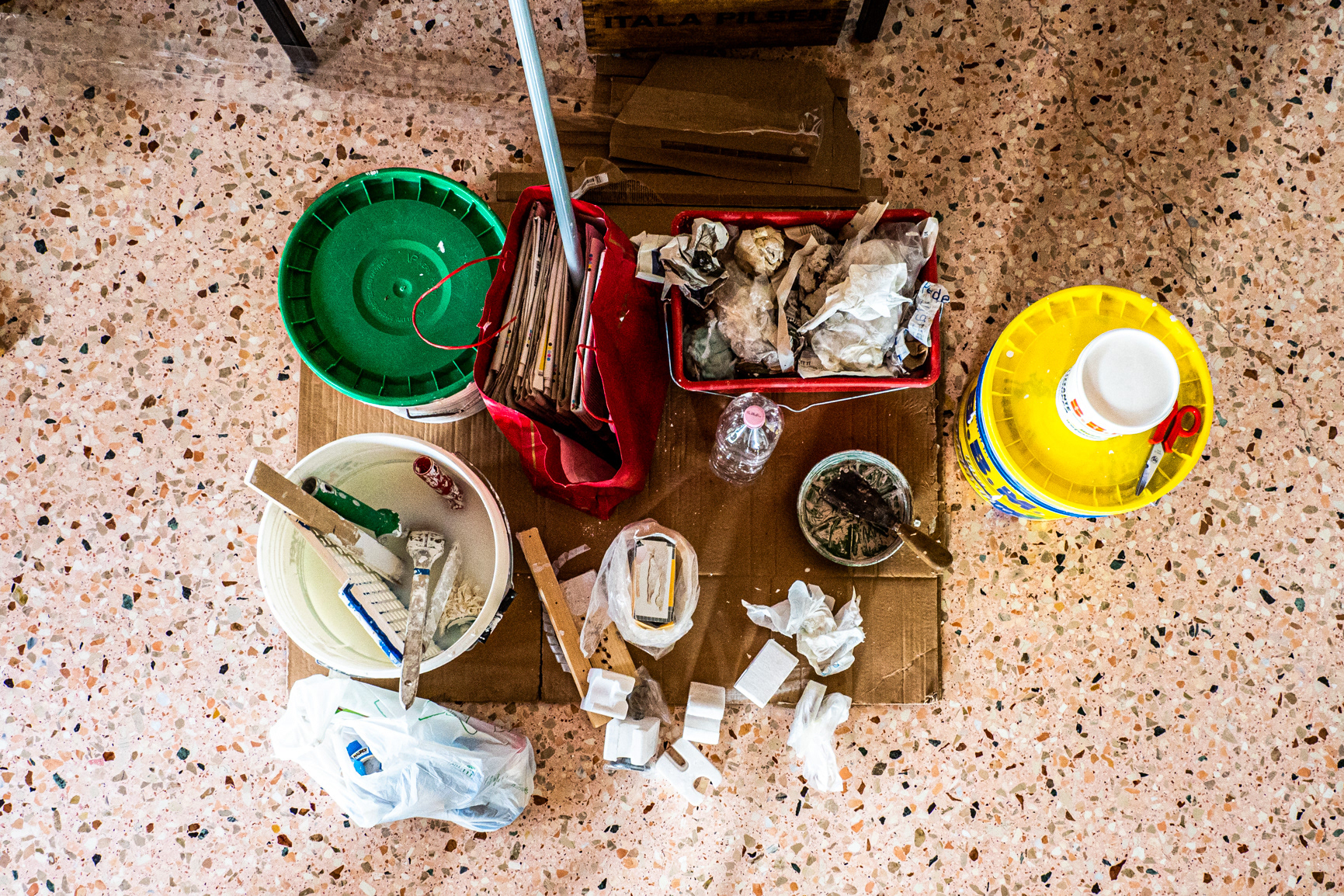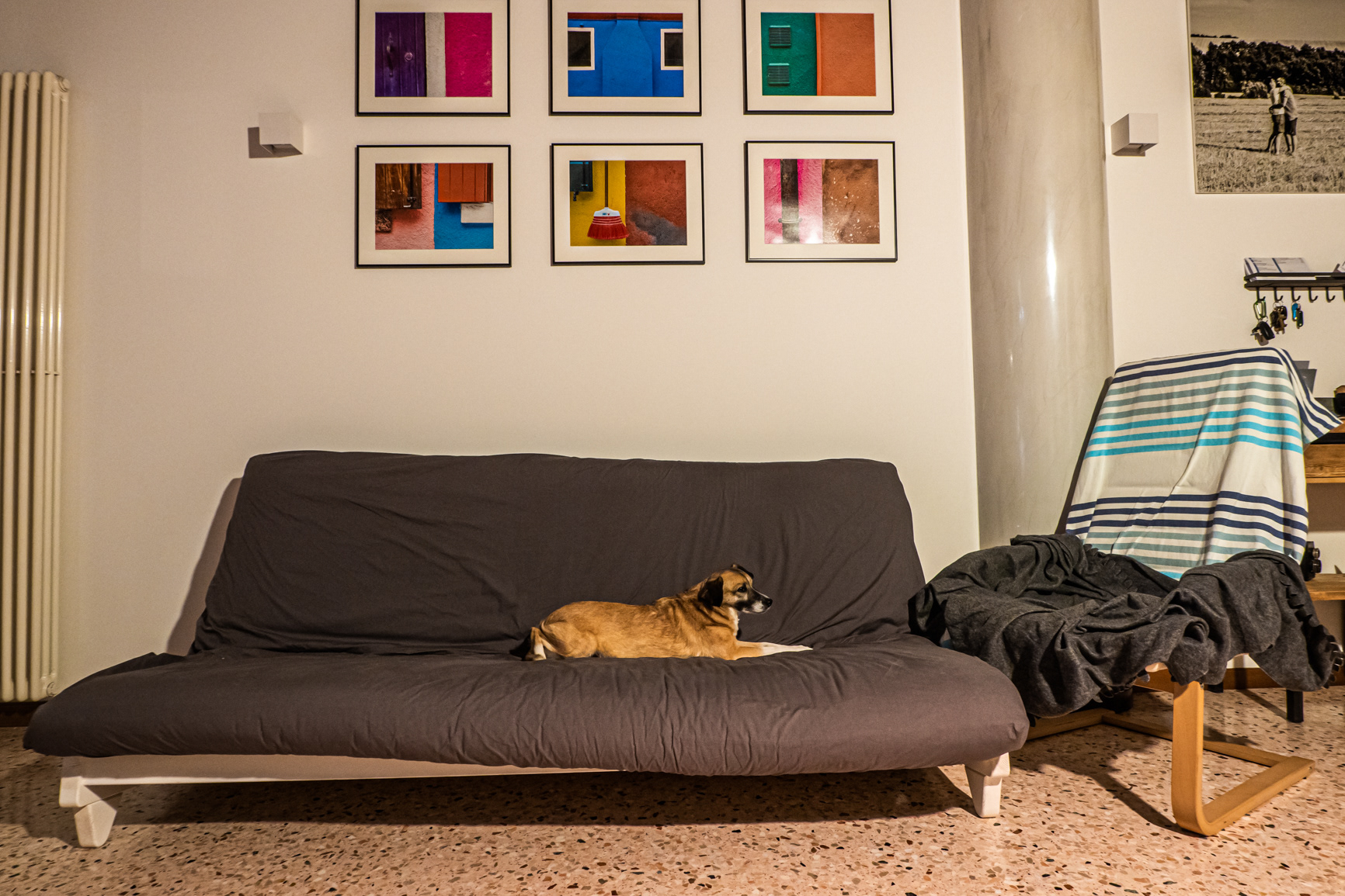 Quarantacinque giorni sospesi in 90 m²: città fuori, luce e mura dentro. Lo slancio si ferma, il ritmo cala. Ogni cambio di tono sulla parete diventa segno. ‘Inside House’ è un taccuino di resistenza domestica.