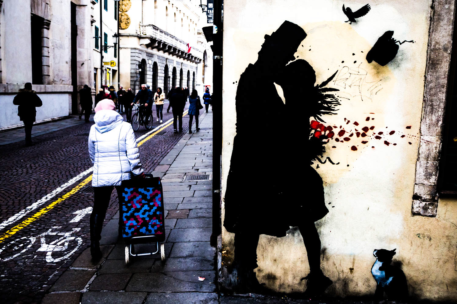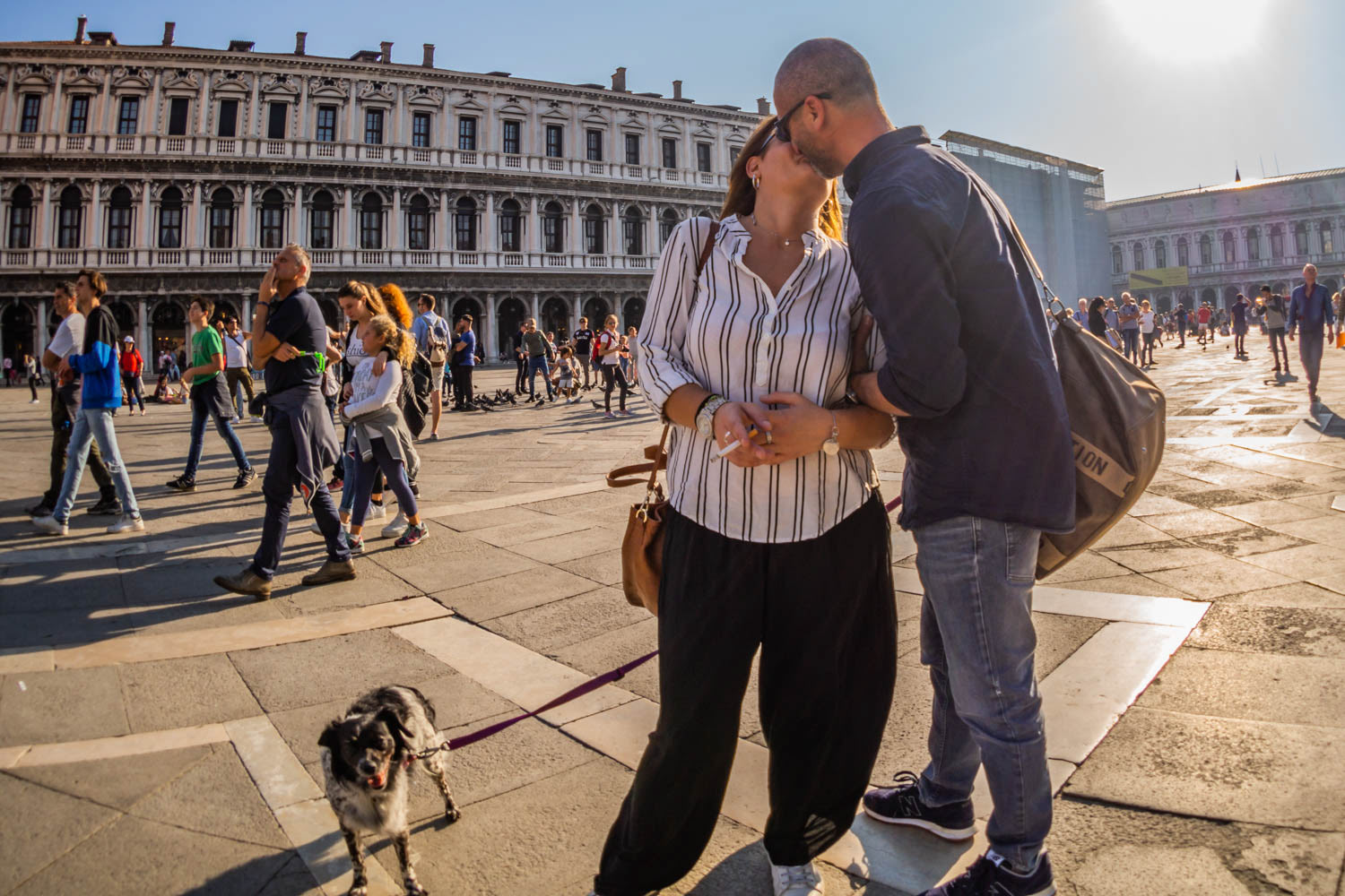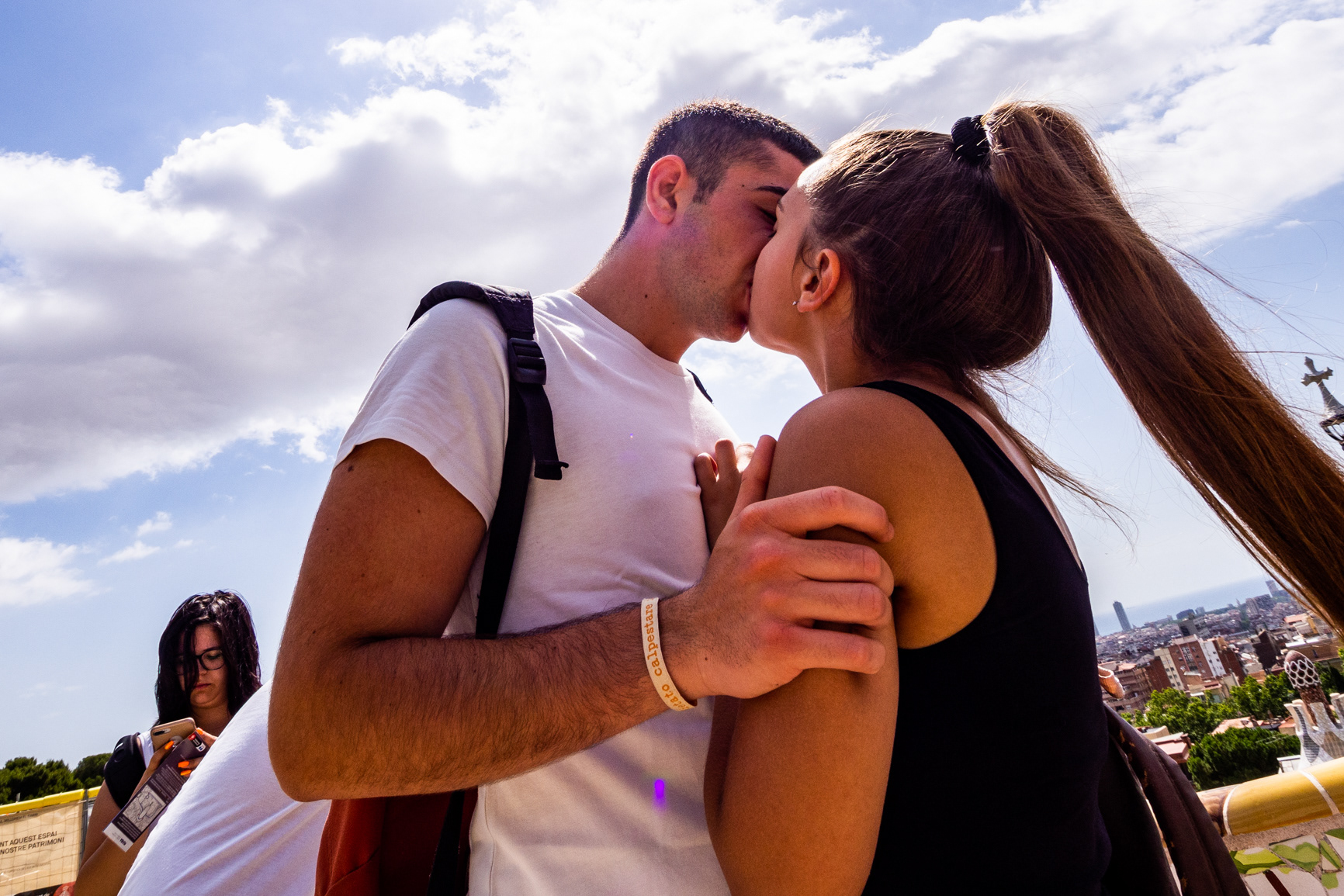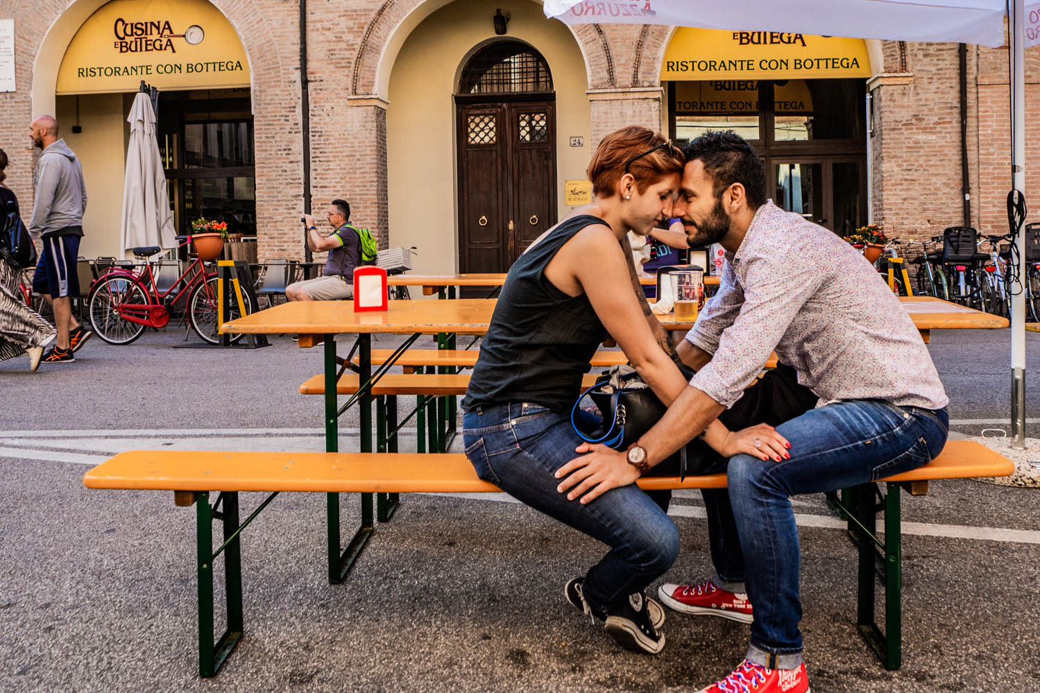Baci che scivolano tra riflessi e traffico. Una carezza prima del verde, una coccola dietro una vetrina. L’amore, in città, non chiede permesso.